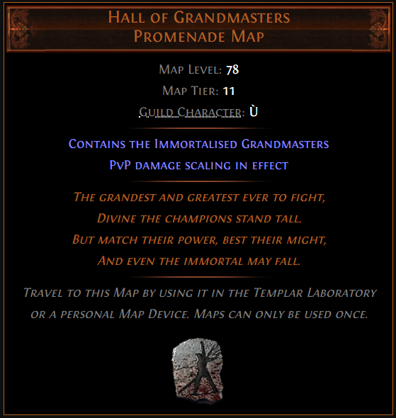 유니크 맵들은 특별한 기믹들이 있는 맵들이다. 오로지 상자만 있는 보물창고 맵도 있고, 경험치만 많이 주는 맵, 할로윈 테마의 맵, 구석의 보스들을 잡기 전까지는 중앙의 보스가 무적인 맵, 웨이브를 디펜스하는 맵 등등 유니크 맵의 숫자만큼 다양하다. 그 중에 명인의 전당이라고 번역된 Hall of Grandmasters 맵은 실제 유저가 PvP로 키운 캐릭터들이 몬스터로 등장한다. 상당히 위험한 맵으로 주의가 필요하다. (현재 이 맵의 티어는 6이다. 오래된 스크린샷)